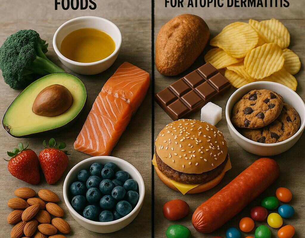 Najczęściej problemem nie jest jeden „zakazany” produkt, lecz kilka grup, które u części osób nasilają świąd i rumień. Lepiej myśleć o ograniczeniu i testowaniu reakcji niż o sztywnej liście zakazów. Kluczem bywa prostota: im mniej ultra‑przetworzenia i dodatków, tym mniejsze ryzyko zaostrzeń.