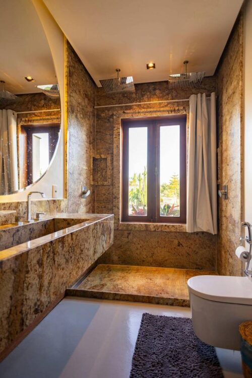Aby optycznie podnieść sufit i sprawić, że łazienka wydaje się wyższa, warto zastosować pionowe linie. Możesz to osiągnąć poprzez wybór płytek o wydłużonym kształcie lub pionowe pasy na ścianach. Badania pokazują, że pionowe linie rzeczywiście potrafią zmylić wzrok i sprawić, że pomieszczenie wydaje się wyższe niż jest w rzeczywistości.